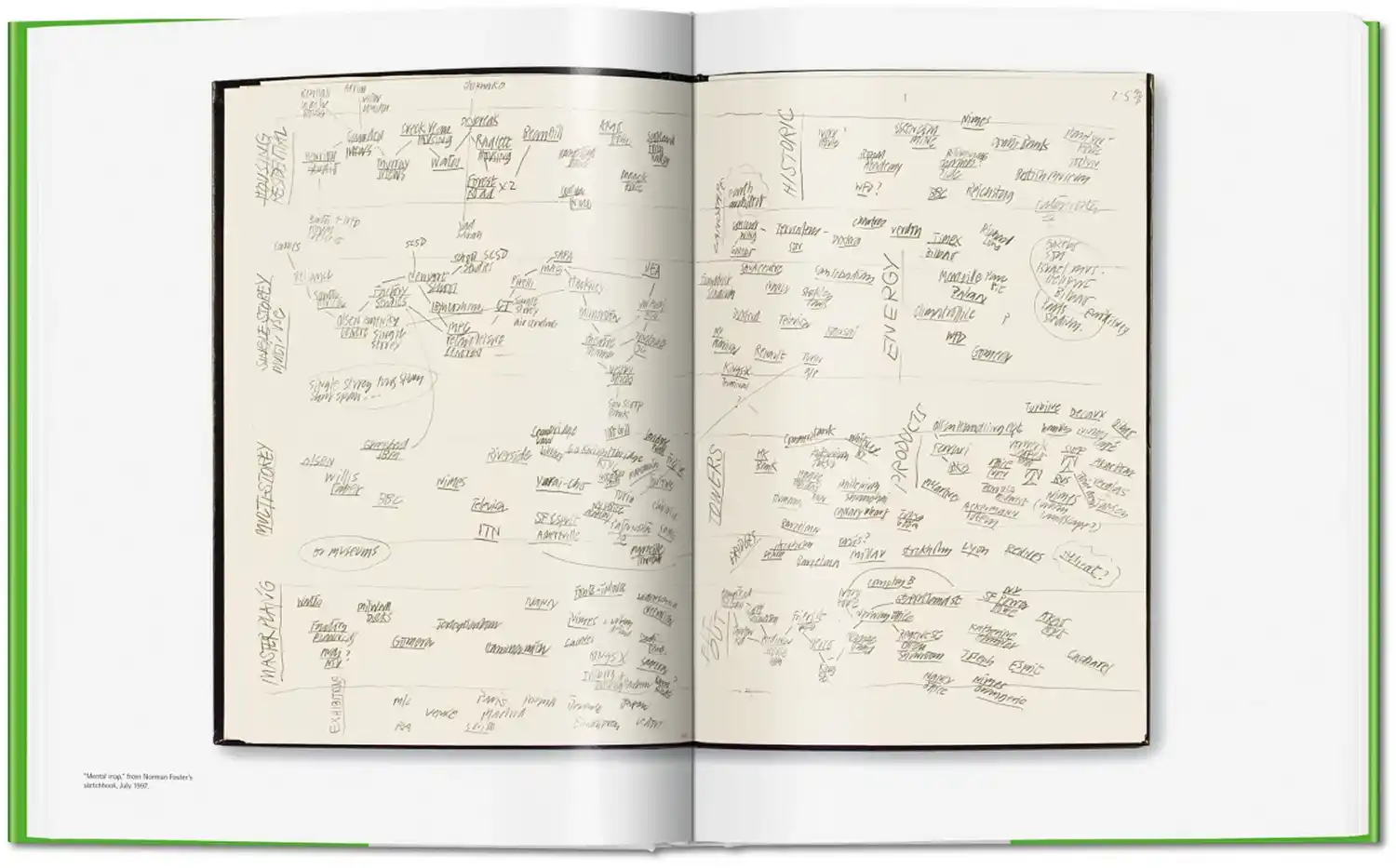 Selten schreibt Foster so direkt über sich selbst wie in diesem Buch. „Networks” ist keine Monografie im üblichen Sinne, sondern eine Sammlung von Essays, die den eigenen Entwurfsprozess freilegen. Kategorien wie „Roots“, „Flight“, „Nature“ oder „Cities“ strukturieren das Material, ohne es zu ordnen – sie verbinden es zu einem offenen Zusammenhang.
