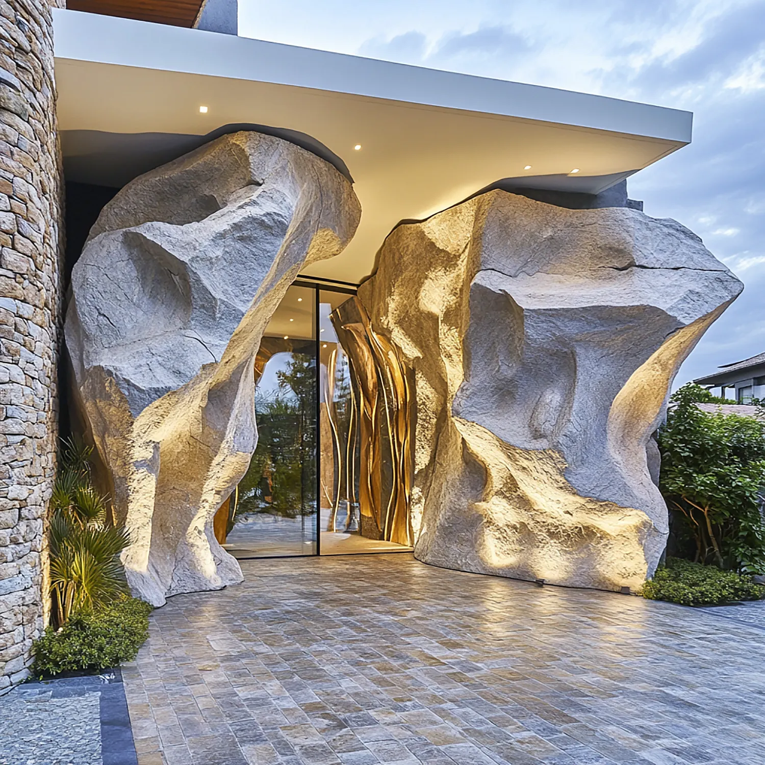 Stein steht für Beständigkeit, Kraft und Naturgewalt. Der Künstler und Designer John Lazurko überträgt diese Eigenschaften in moderne Architektur und Wohndesign. Mit handwerklicher Präzision und Materialinnovation schafft er monumentale Gesteinsformationen, die sich nahtlos in Innen- und Außenräume einfügen. Ob imposante Hauseingänge, texturierte Wandverkleidungen oder skulpturale Möbel – seine Werke wirken täuschend echt. Doch hinter der rauen Ästhetik steckt Hightech: Eine spezielle Betonmischung und Bewehrungstechnik sorgen für langlebige, witterungsbeständige und funktionale Oberflächen.