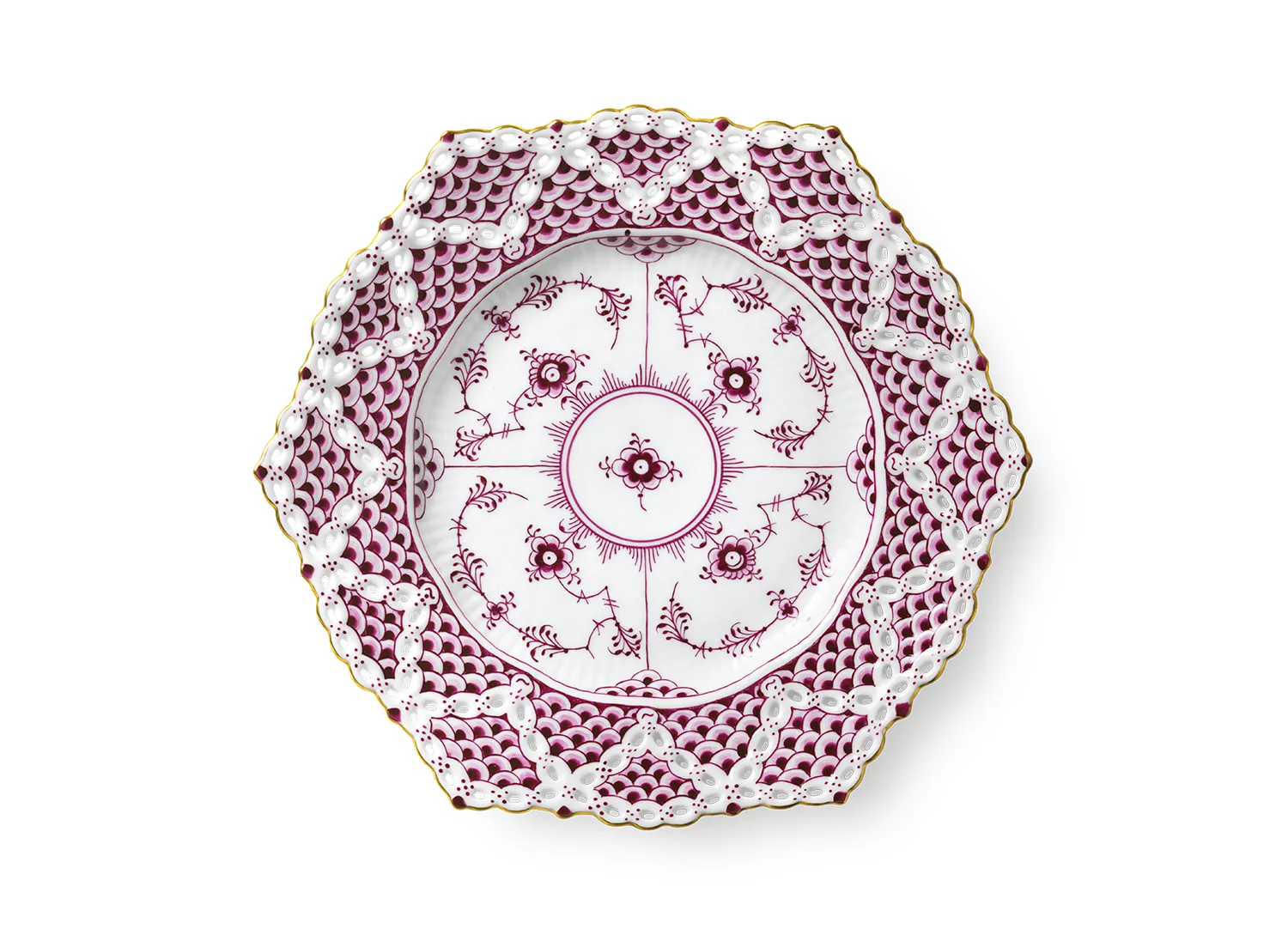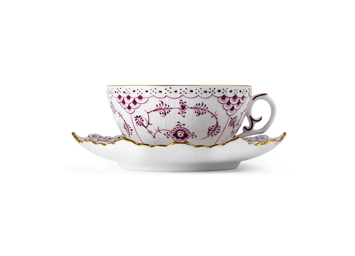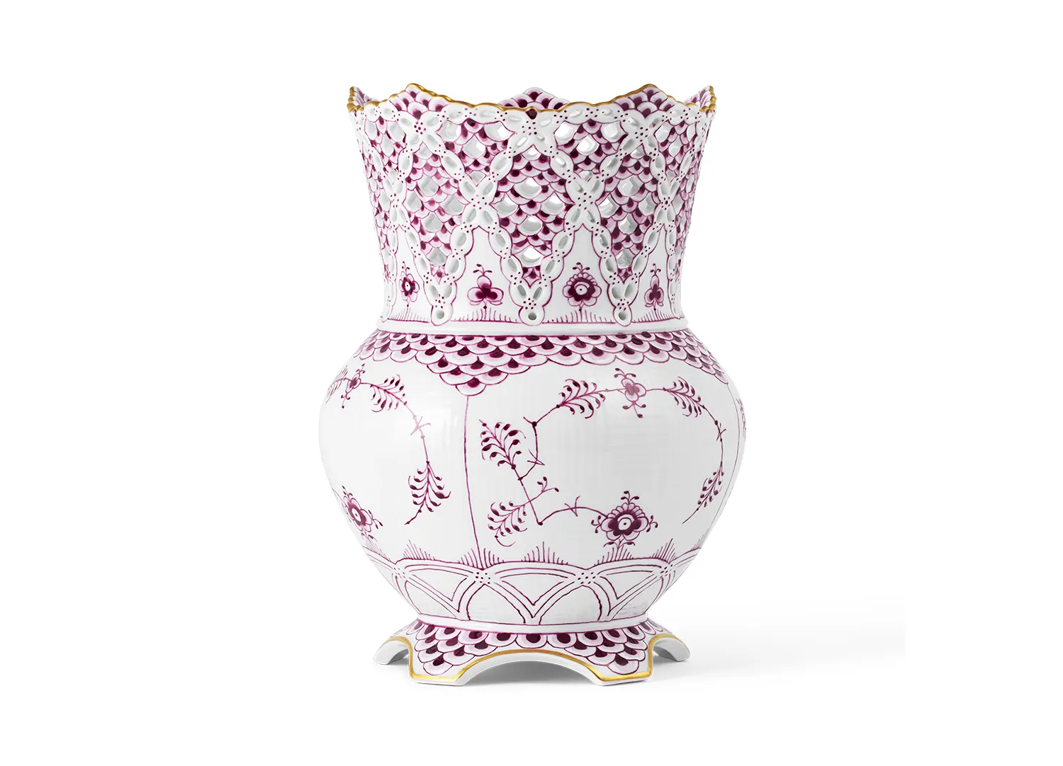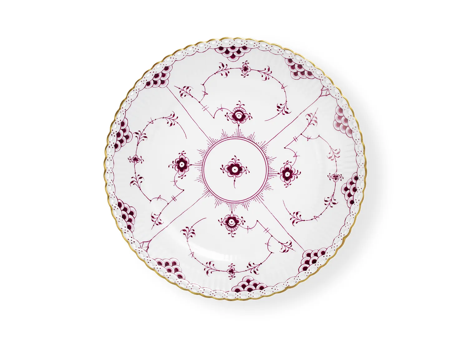 Royal Copenhagen feiert sein 250-jähriges Bestehen mit der beeindruckenden Neuauflage der Kollektion Musselmalet Vollspitze Purpur mit Gold, die erstmals in den 1880er Jahren in das Portfolio aufgenommen wurde. Diese exklusive Kollektion kombiniert die seltene, handgemalte Farbe Purpur mit kunstvoll gearbeitetem Spitzendekor und 24-karätigen Goldkanten – eine Verschmelzung von Luxus und Handwerkskunst, die ihresgleichen sucht.