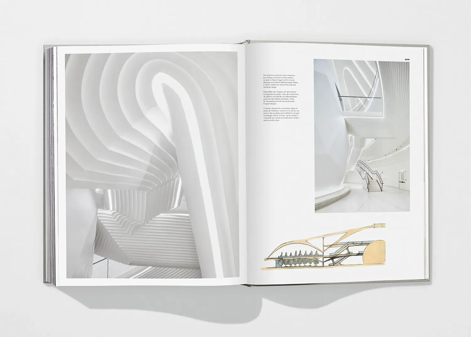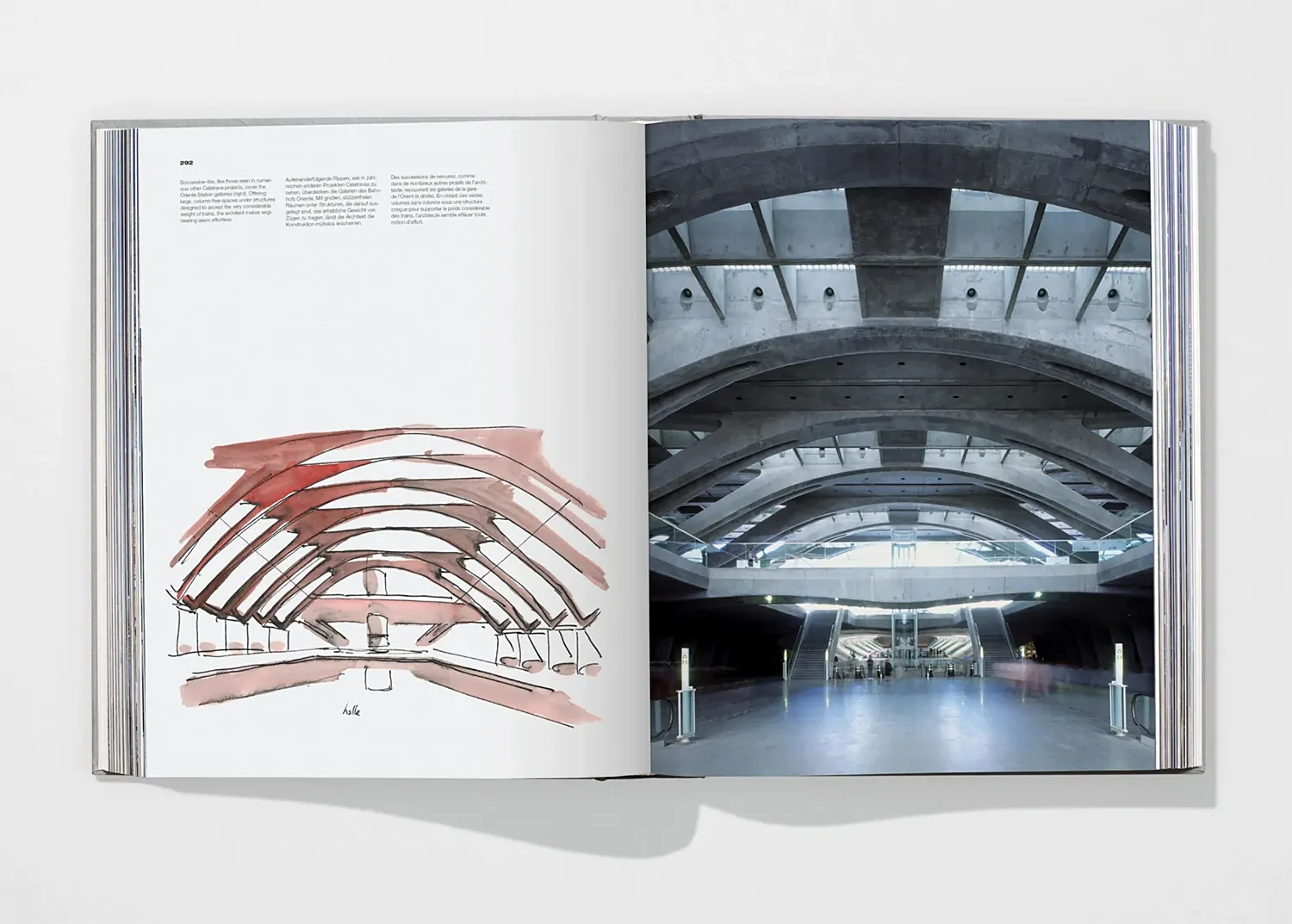 From bridges and railway stations to cultural and government buildings, the book documents numerous projects that Calatrava has realised over the course of his career. Each chapter is dedicated to a specific project and highlights both technical and design aspects. One example is the Lyon-Saint-Exupéry railway station, which is characterised by its dynamic, bird-like shape. These projects demonstrate Calatrava’s ability to respond to different architectural requirements while maintaining a clear, often sculptural formal language.