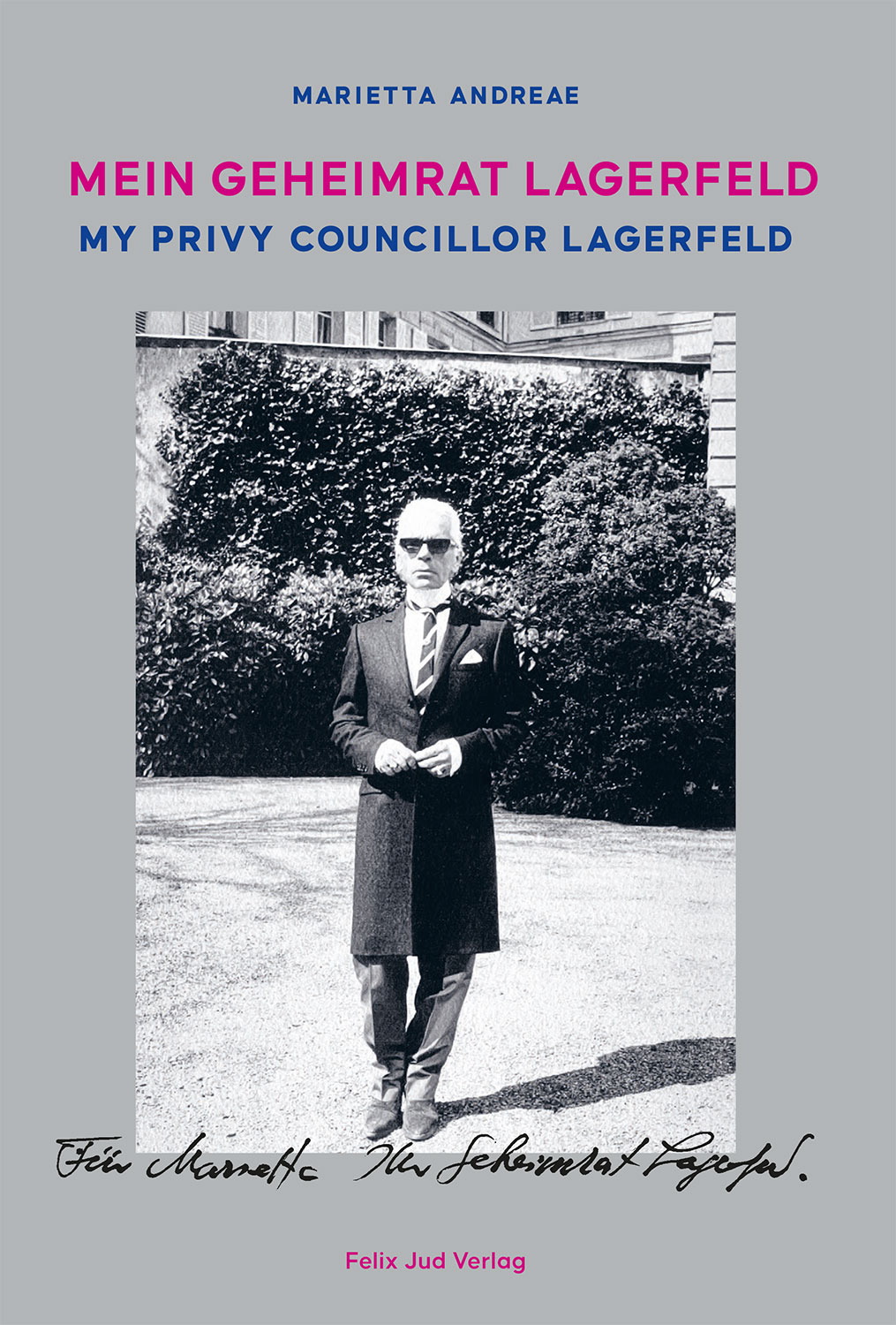 Further information about the book “Mein Geheimrat Lagerfeld – My Privy Councillor Lagerfeld” (Advertisement) can be found on the publisher’s website Felix Jud (in German).