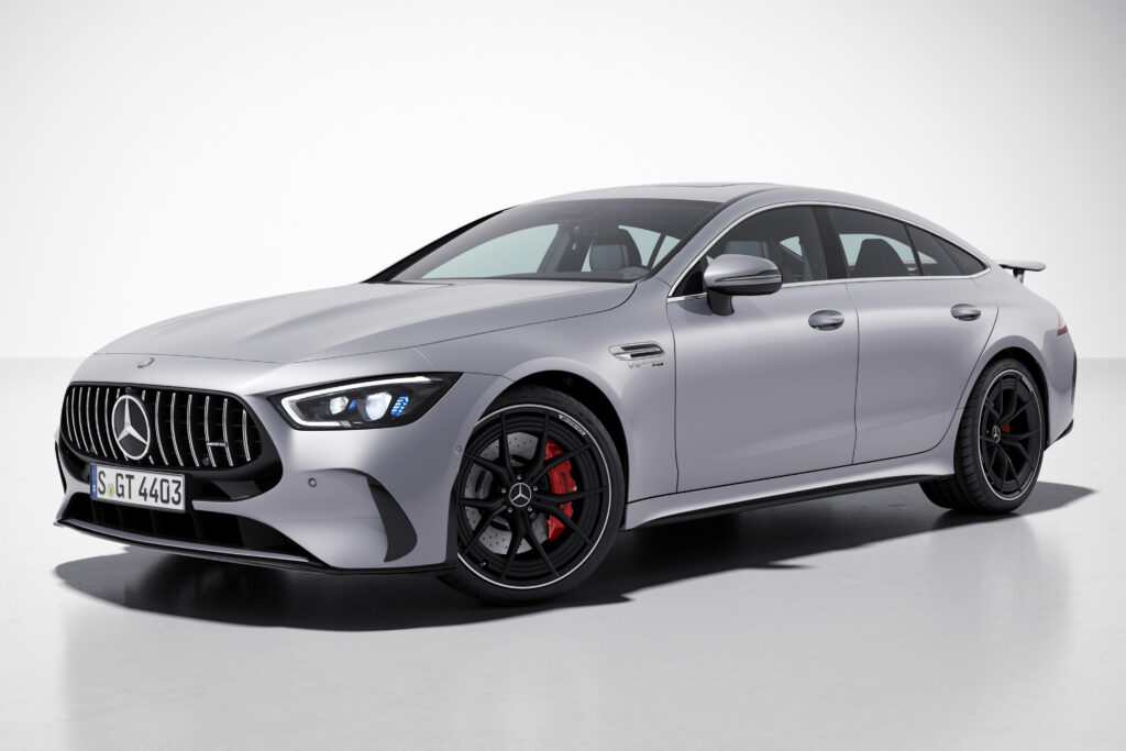 The GT 63 4MATIC+ 4-Door Coupé delivers 430 kW (585 hp) with a maximum torque of 800 Nm. Acceleration from 0-100 km/h takes 3.4 seconds and the top speed is 310 km/h. The more powerful GT 63 S 4MATIC+ 4-Door Coupé offers 470 kW (639 hp), 900 Nm of torque, 0-100 km/h in 3.2 seconds and reaches 315 km/h, and has held the Nürburgring Nordschleife record in the luxury class since 2018.