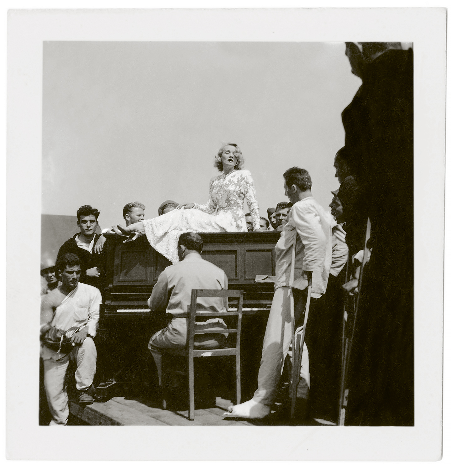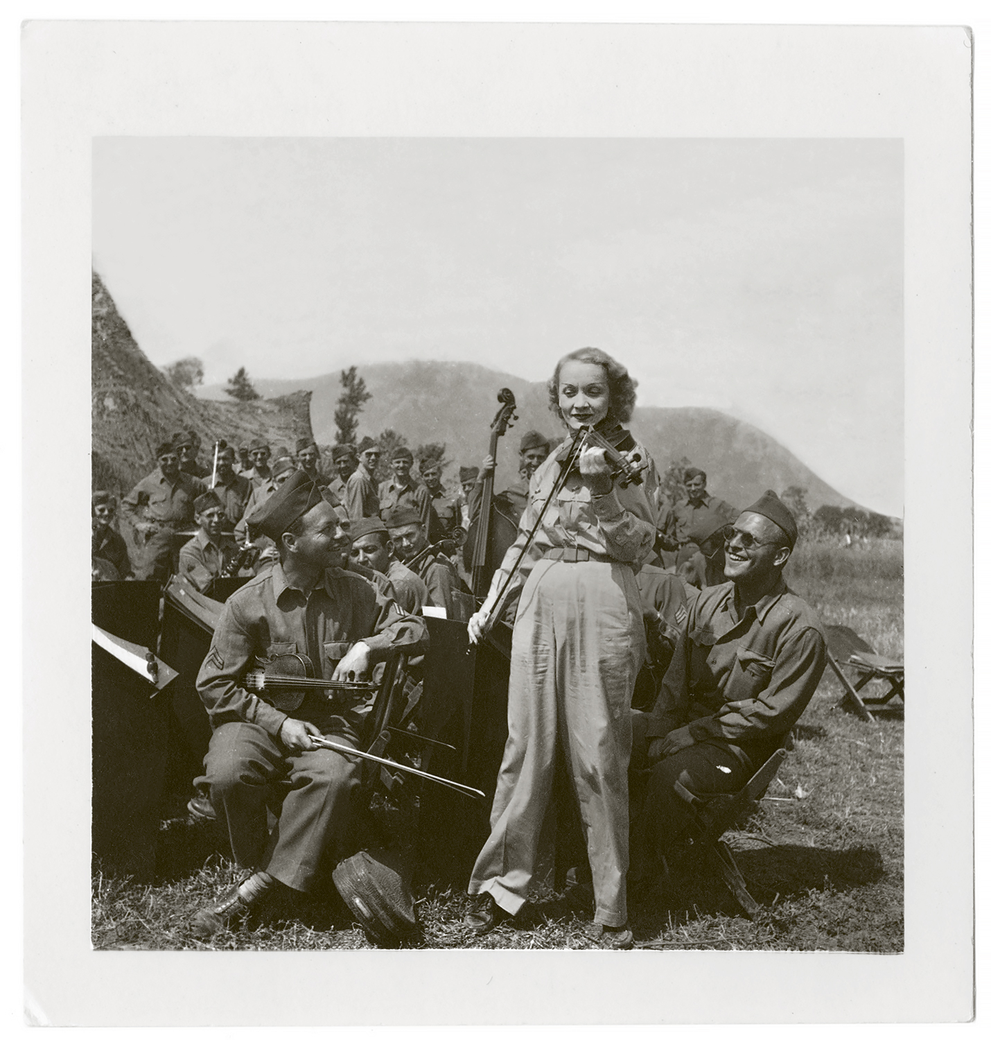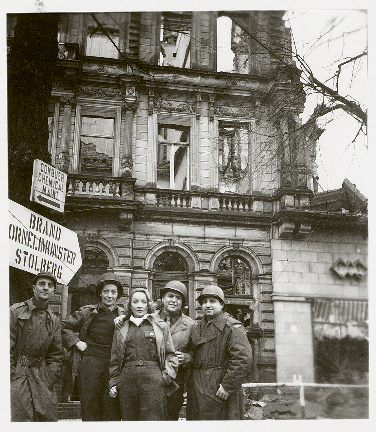 À partir de 1944, Dietrich entreprend des tournées d’assistance aux troupes à travers l’Europe. Elle voyage à travers l’Italie, la France, la Belgique et l’Allemagne, se produisant sur des scènes provisoires, souvent à quelques kilomètres seulement du champ de bataille. Elle brave non seulement le froid, la boue et les rats, mais aussi le risque d’être capturée par la Wehrmacht. Son courage et sa persévérance impressionnent non seulement les soldats, mais aussi les officiers. Ses apparitions ne sont pas des spectacles hollywoodiens glamour, mais des représentations intimes et spontanées qui redonnent un peu de normalité et d’espoir aux soldats épuisés.